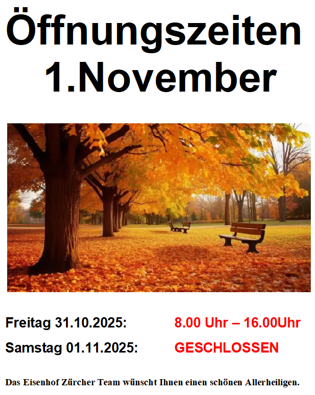 08:00 – 12:00 / 14:00 – 18:30 Uhr