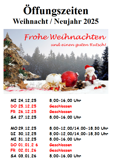 08:00 – 12:00 / 14:00 – 18:30 Uhr